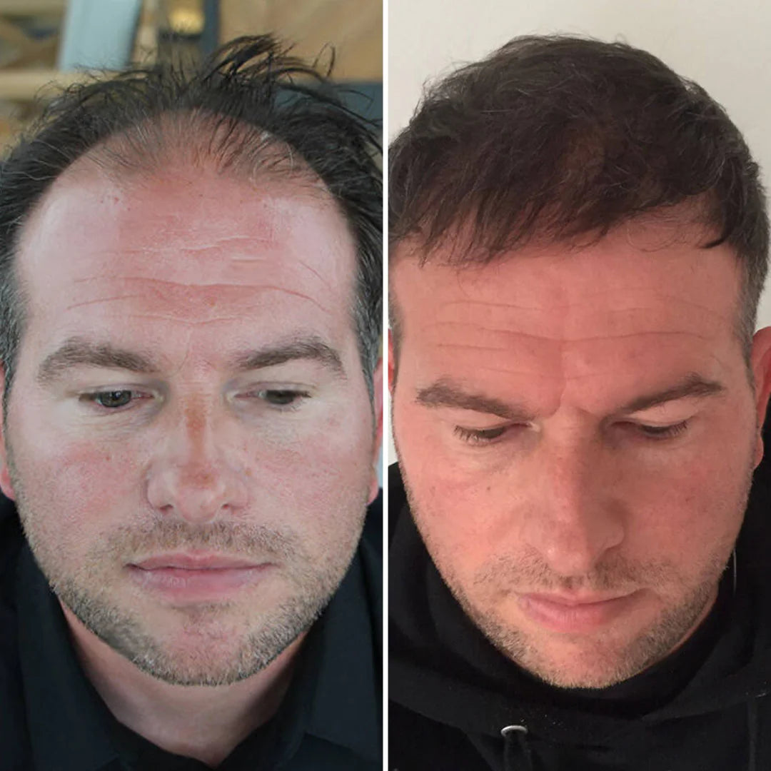 "Me preocupaba mucho la calvicie, pero tras usar AlphaInfuse™ durante unas semanas, comencé a ver nuevos brotes. Es increíble cómo ha cambiado la densidad de mi cabello. ¡Estoy muy feliz con los resultados!"