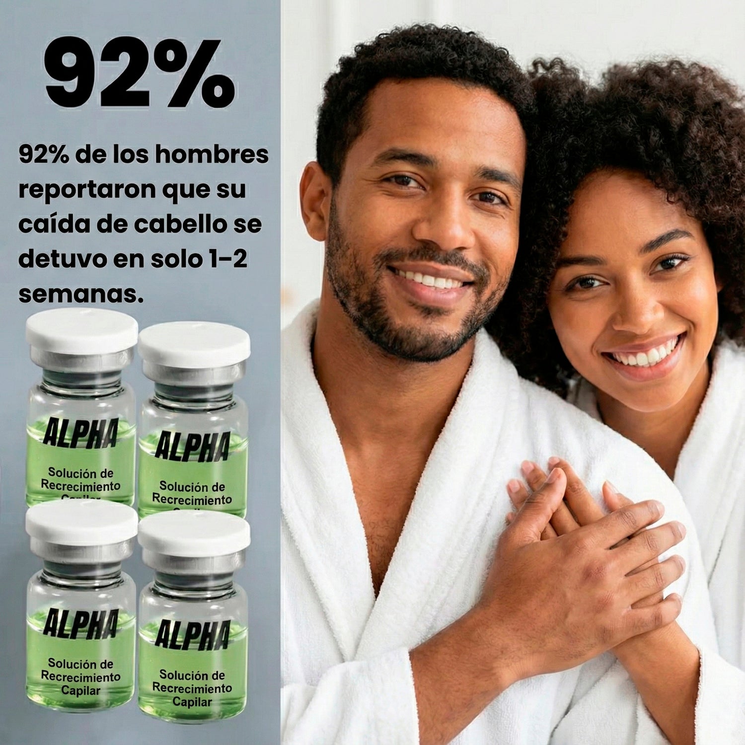 En solo 1-2 semanas, AlphaInfuse™ detiene la caída del cabello y comienza a estimular el crecimiento. Con nuestra fórmula avanzada y segura, notarás un cambio en la densidad y fuerza de tu cabello. ¡Recupera tu confianza hoy mismo!