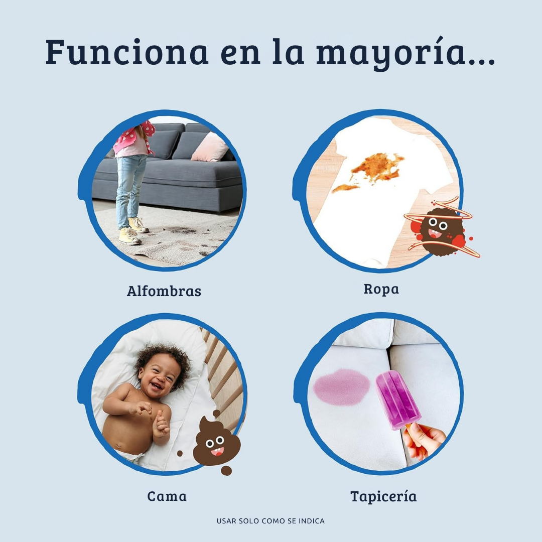 ✅ Multiusos: funciona en ropa, tapicería y alfombras, tanto en manchas frescas como secas.