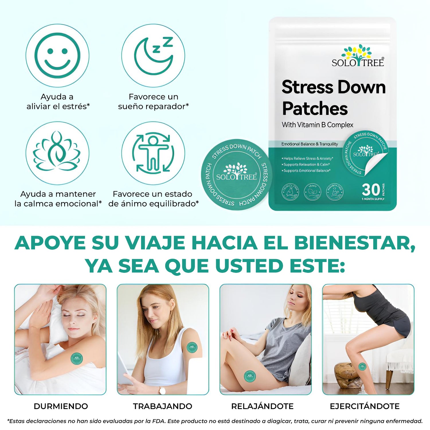 Los Parches para estrés SOLOTREE™ han sido formulados con complejo de vitamina B para apoyar la relajación, aliviar el estrés y mantener tu bienestar diario.